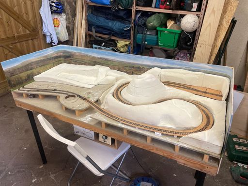 A softwood 2” x 1” frame was covered in 9mm Sundeala, with a river gorge cut into it and a looping trackbed. This was soon found to be far too steep, and the layout went into storage for about 20 years as life got in the way.